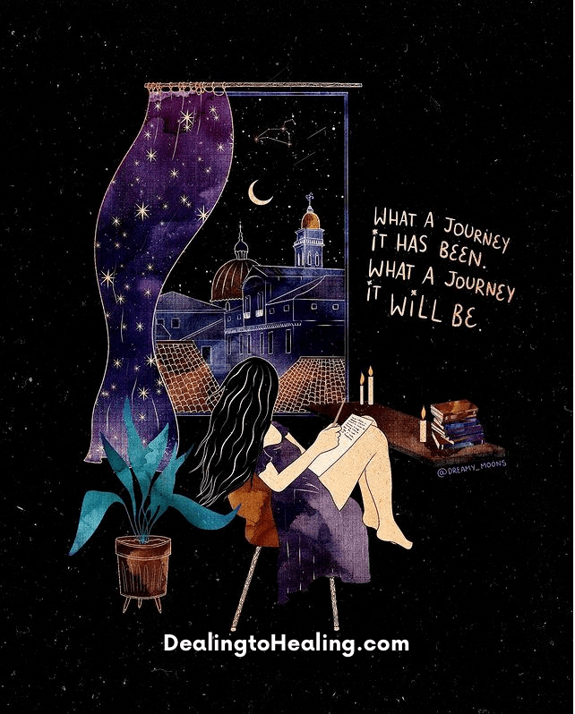 I want to believe that is a church or a spiritual temple beside it, to the right. It’s my place of hope, peace, tranquility, and love. It’s my source of being the best version of me. And see the moon? It’s the waning crescent that represents restoring your thoughts and intentions. Looks like the stars are lined up in my favor.