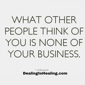 It’s taken a lot of healing and time for me to accept that what people think about me is none of my business. It works both ways. If they think I’m great, wonderful, fun, inspirational, etc…that is just their opinion of me. It does not make it true. If they think I’m hateful, mean, ugly, impatient, etc..that is their opinion of me and that does not make it true.