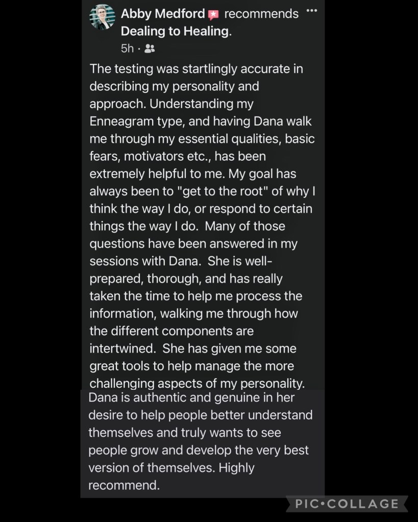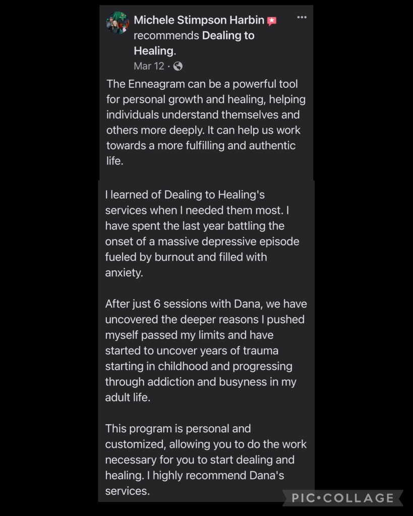 I look forward to the next group of participants. If you have an interest in being a participant or questions about Enneagram sessions please reach out to me via social media or dealingtohealing@gmail.com.