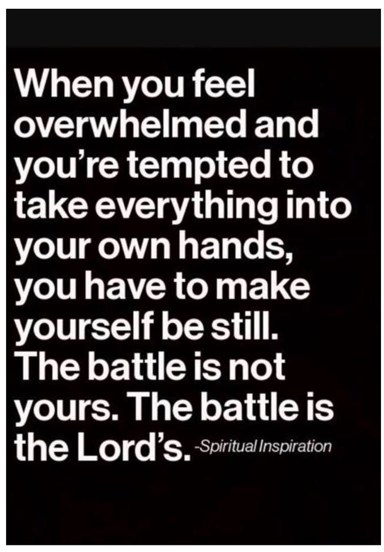 I was supposed to have a small outpatient surgery this coming Wednesday in Nashville. Last Monday I started getting roadblocks, not speed bumps to prevent me from having it. I was initially upset, frustrated and I still don’t understand why it’s not working out but I’m accepting it. The old me would’ve tried to beatContinue reading “The Battle Is Not Yours”
